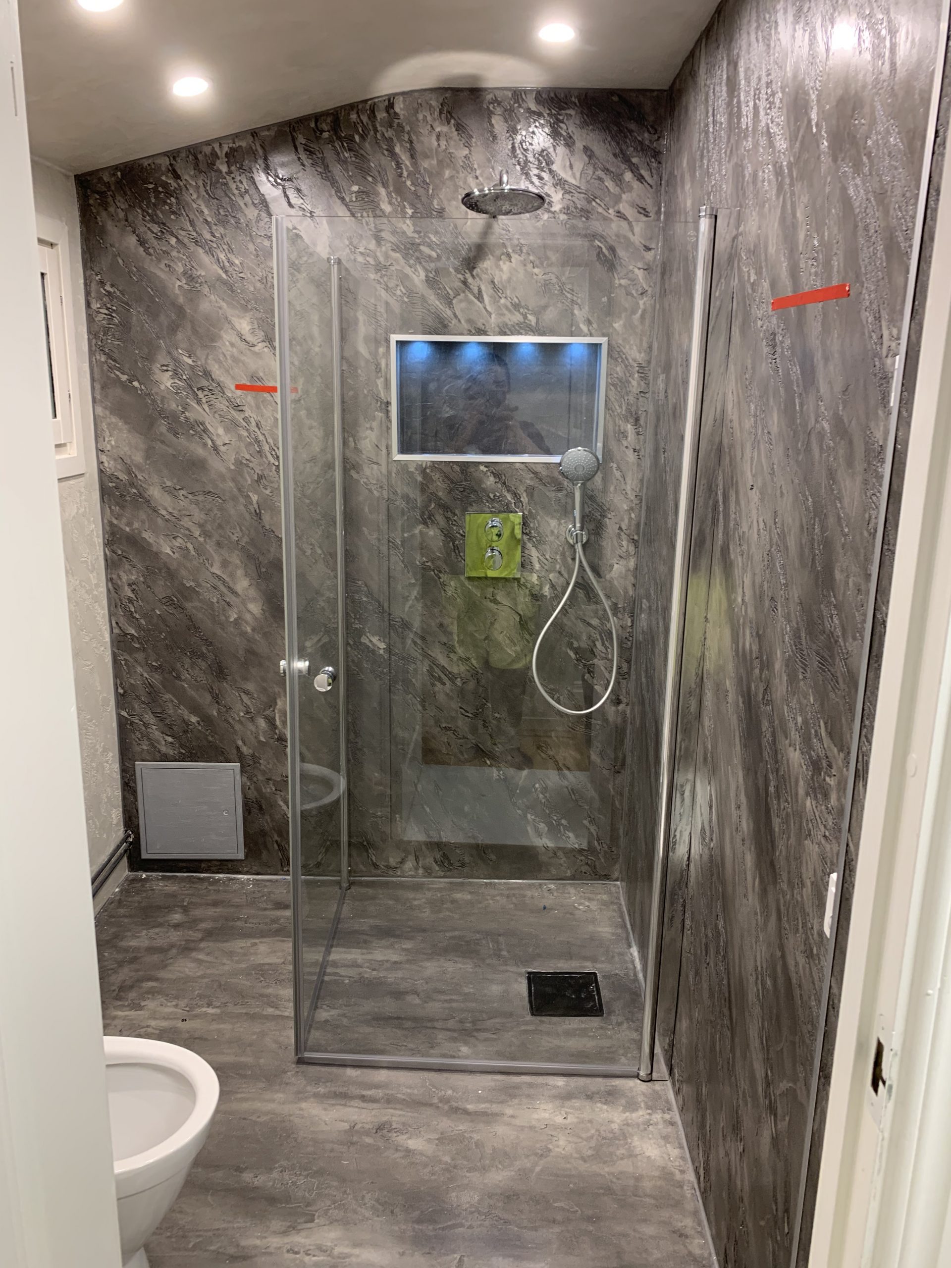 At MORENO BYGG S.L., we specialize in high-quality bathroom renovations that combine smart, functional design with meticulous attention to detail. Our team of highly skilled professionals is dedicated to transforming your space with precision, delivering waterproofing solutions backed by a 99.99% guarantee against moisture transmission